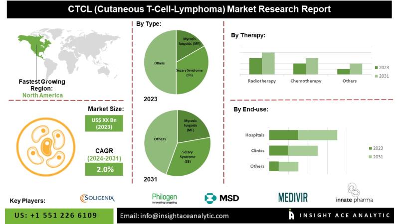 InsightAce Analytic Pvt. Ltd. announces the release of a market assessment report on the "Global CTCL (Cutaneous T-Cell-Lymphoma) Market- (By Type (Mycosis Fungoides (MF), Sézary Syndrome (SS), And Other Related Diseases), By Therapy (Radiotherapy, Chemotherapy, Immunotherapy, Stem Cell Transplantation, And Others), End-user (Hospitals, Clinics, Ambulatory Surgical Centers, and Other)), By Region, Trends, Industry Competition Analysis, Revenue and Forecast To 2031."
