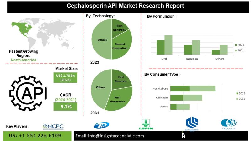 InsightAce Analytic Pvt. Ltd. announces the release of a market assessment report on the "Global Cephalosporin API Market - (By Product Type (First Generation, Second Generation, Third Generation, Fourth Generation), By Formulation (Oral, Injection), By Consumer Type (Hospital Use, Clinic Use, Recovery Center)), Trends, Industry Competition Analysis, Revenue and Forecast To 2031."