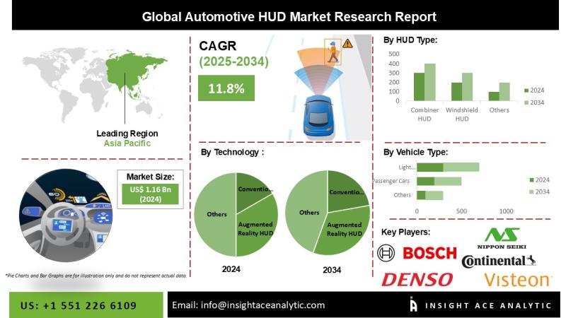 InsightAce Analytic Pvt. Ltd. announces the release of a market assessment report on the "Global Automotive Head-Up Display Market- (By Technology (Conventional HUD, Augmented Reality HUD), By HUD Type (Windshield HUD, Combiner HUD), By Dimension Type (2D HUD, 3D HUD), By Passenger Car Class (Economy Cars, Mid-segment cars, Luxury cars), By Vehicle Type (Passenger cars, Commercial Vehicles), By Electric Vehicle Type (BEVs, PHEVs, HEVs, FCEVs), By Propulsion Type (ICE Vehicles,…