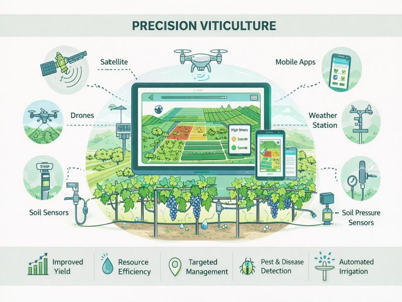 Precision viticulture integrates technologies such as GPS, remote sensing, drones, IoT sensors,…