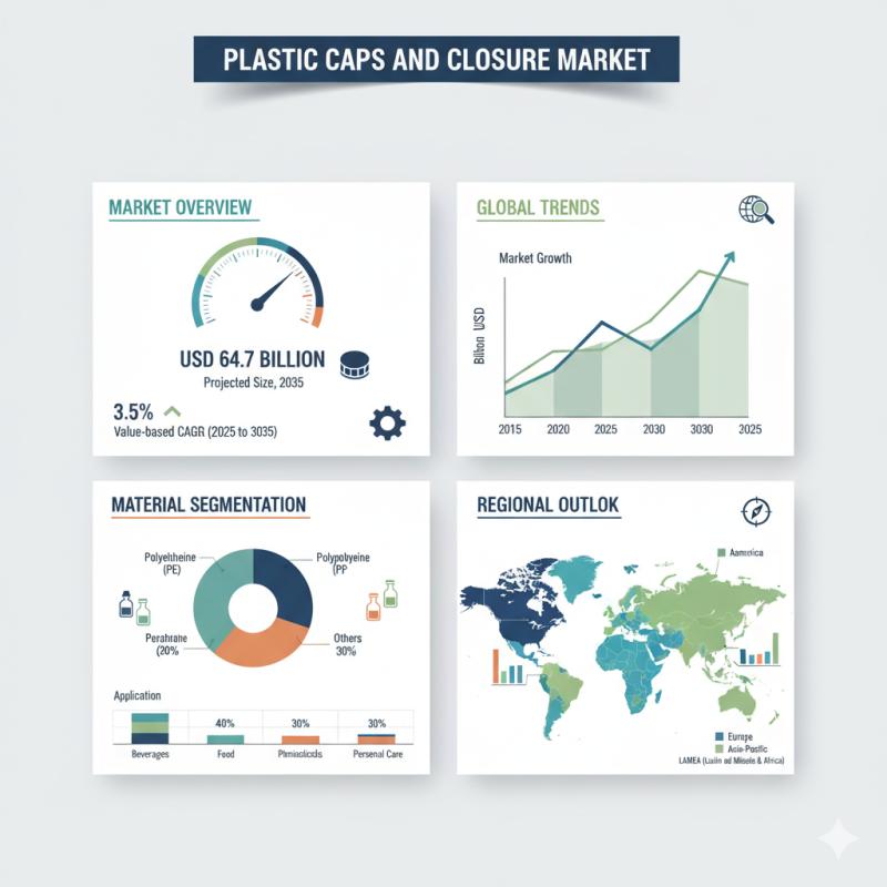 The global Plastic Caps & Closures market is set to expand from US $45.9 billion in 2025 to approximately US $64.7 billion by 2035, growing at a steady CAGR of 3.5% during the forecast period. Driven by the surge in convenience packaging, rising demand for functional beverages, and sustainability-focused innovation, the market is creating strong value across end-use sectors and regions.