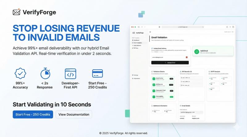 VerifyForge Launches Email Validation API with 99%+ Accuracy