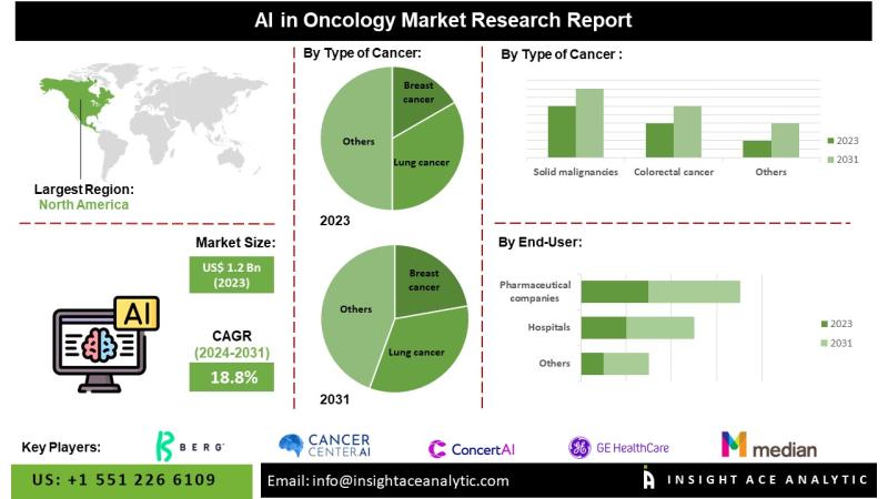 InsightAce Analytic Pvt. Ltd. announces the release of a market assessment report on the "Global AI in Oncology Market- (Type of Cancer (Solid malignancies, Breast cancer, Lung cancer, Prostate cancer, Colorectal cancer, Brain tumor, Others), By End User (Hospitals, Pharmaceutical companies, Research Institutes, Others)), By Region, Trends, Industry Competition Analysis, Revenue and Forecast To 2031."