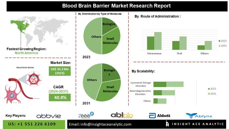 InsightAce Analytic Pvt. Ltd. announces the release of a market assessment report on the "Blood Brain Barrier Market"- Distribution by Type of Molecule (Biologics and Small Molecules), Route of Administration (Intravenous and Oral), Target Disease Indication (Amyotrophic Lateral Sclerosis, Leptomeningeal Carcinomatosis, Mucopolysaccharidosis Type II (Hunter Syndrome), Mucopolysaccharidosis Type III A (Sanfilippo Syndrome A) and Multiple Sclerosis) and Therapeutic Area (Lysosomal Storage Disorders, Neurodegenerative Disorders, and Neuro-Oncology Disorders), Industry Trends, Industry…