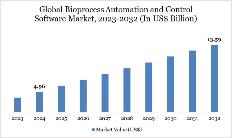 The Bioprocess Automation and Control Software Market was valued at US$ 4.96 billion in 2024 and is projected to reach US$ 13.59 billion by 2032, growing at a strong CAGR of 13.7% during 2025-2032. This growth is propelled by rising biopharmaceutical production, increasing demand for automated upstream and downstream processes, and the shift toward digitalized, data-driven bioprocessing environments.The market is strengthening its position as biomanufacturers adopt advanced control software to improve process reliability, reduce variability, and enhance scalability across cell culture, fermentation, purification, and quality monitoring workflows. Integration of real-time analytics, AI-enabled optimization, and seamless automation across equipment and platforms is driving higher productivity, regulatory compliance, and cost efficiency, reinforcing long-term market expansion.