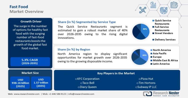 The Fast Food Market is positioned for sustained expansion, underpinned by rising urbanization, growing disposable incomes, and heightened preference for quick, affordable meals. The industry reached a valuation of USD 938.16 billion in 2025 and is projected to grow to USD 1.57 trillion by 2035, supported by a 5.3% CAGR between 2026 and 2035. This growth trajectory reflects the sector's resilience and its ability to evolve through…