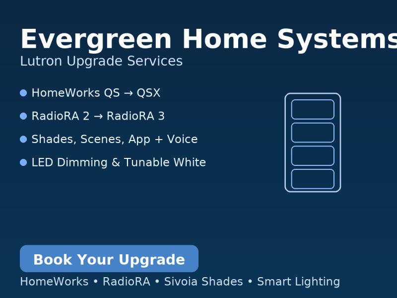 Evergreen Home Systems Inc - Lutron Upgrade Services for HomeWorks QS/QSX, RadioRA 3, and Sivoia shade integration