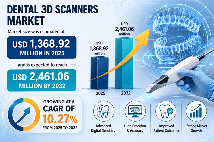 The global Dental 3D Scanners Market size was estimated at USD 1,368.92 million in 2025 and is expected to reach USD 2,461.06 million by 2032, growing at a CAGR of 10.27% from 2025 to 2032. This strong growth trajectory reflects the accelerating transformation of dentistry from analog to fully digital workflows. Dental professionals are increasingly adopting advanced scanning technologies to improve diagnostic accuracy, enhance treatment outcomes, and…