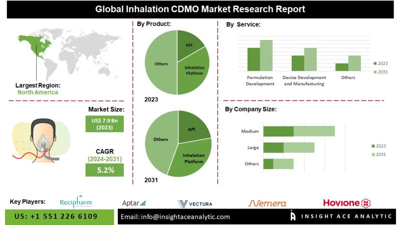 InsightAce Analytic Pvt. Ltd. announces the release of a market assessment report on the "Global Inhalation CDMO Market- (By Product (API, Inhalation Platform), By Services (Formulation Development, Device Development and Manufacturing, Clinical Manufacturing, Scale-up and Tech Transfer, Quality Control and Quality Assurance, Technology and Innovation, Regulatory Assistance, Analytical Services)), By Company Size, By Scale of Operation, By Region, Trends, Industry Competition Analysis, Revenue and Forecast To 2031."