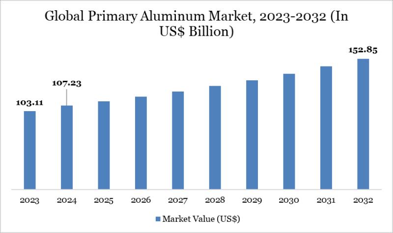 The global primary aluminum market reached US$107.23 billion in 2024 and is expected to reach US$152.85 billion by 2032, growing at a CAGR of 4.59% during the forecast period 2025-2032.