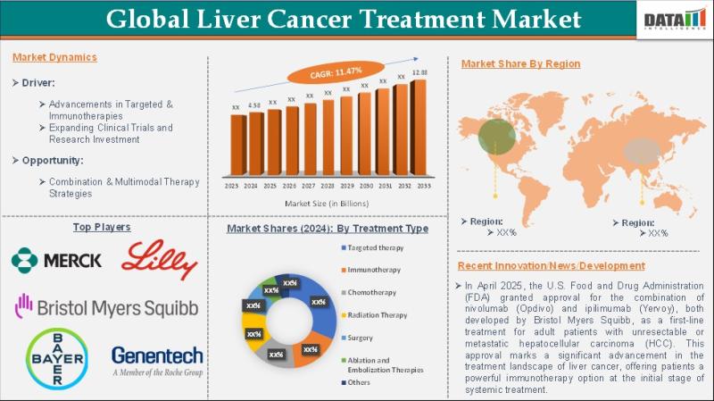 The Global Liver Cancer Treatment Market reached US$ 4.58 billion in 2024 and is projected to reach US$ 12.88 billion by 2033, expanding at a strong CAGR of 11.4% during the forecast period 2025-2033. Market growth is driven by rising global incidence of liver cancer, increasing prevalence of chronic liver diseases, and growing adoption of advanced treatment options such as targeted therapies, immunotherapies, and combination regimens. Expanding screening programs and…