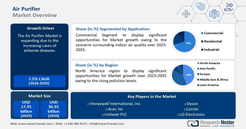 The Air Purifier Market is witnessing accelerated global adoption as consumers, businesses, and institutions increasingly prioritize indoor air quality. Rising pollution levels, awareness of airborne health risks, and growth in commercial infrastructure have positioned air purifiers as essential tools for environmental safety and public health. The market stood at USD 17.91 billion in 2025, and with stronger demand across commercial and residential sectors, it is expected to…