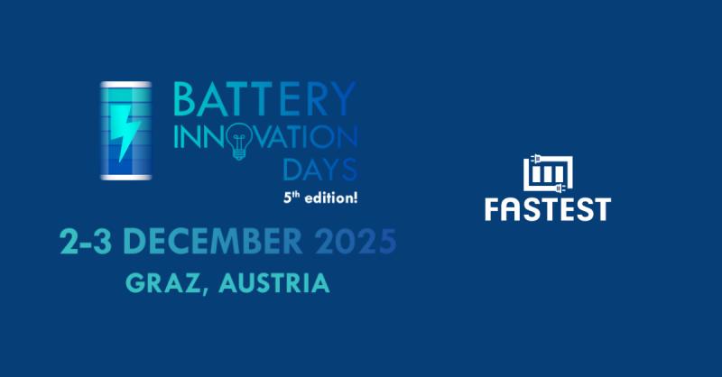 The FASTEST Project will take part in the upcoming Battery Innovation Days (BID) 2025, taking place in Graz next December 2-3, and in the COLLABAT workshop on December 1. Bruno Rodrigues, Project Coordinator of FASTEST, will participate in both events, contributing to discussions on digitalisation and sustainability in European battery innovation.On December 1, FASTEST will join the COLLABAT workshop at Lendhafen Graz, a collaborative session focused on the long-term sustainability and impact of EU battery clusters. The following days, December 2-3, FASTEST will attend the Battery Innovation Days 2025, where the twinBATT Cluster - which includes FASTEST alongside THOR, DigiBatt, and AccCellBaT - will host an exhibition stand and participate in the session 'The future of AI in battery innovation and production.'