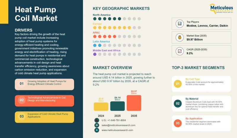 Meticulous Research®-a leading global market intelligence firm-has released its latest report titled "Heat Pump Coil Market Size, Share & Forecast 2025-2035: Global Trends, Growth Drivers & Regional Outlook."
