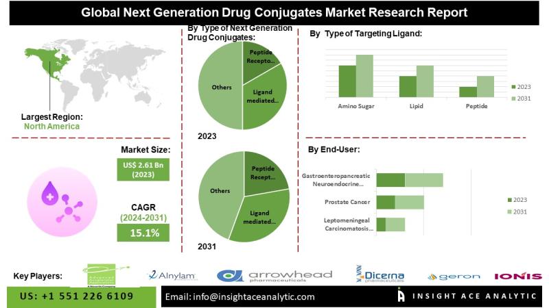 InsightAce Analytic Pvt. Ltd. announces the release of a market assessment report on the "Global Next Generation Drug Conjugates Market- (By Type (Peptide Receptor Radionuclide Therapy, Ligand mediated RNAi Conjugate, Ligand Conjugated Anti Sense Medicine and Peptide Drug Conjugate), By Type of Targeting Ligand (Amino Sugar, Peptide, Lipid, Small Molecule and Virus-like Particles), By Type of Payload (Peptide, Small Molecule, Oligonucleotide, Radionuclide), By Type of Therapy (Monotherapy, Combination Therapy), By…