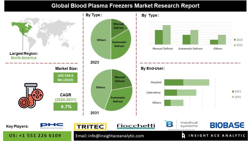 InsightAce Analytic Pvt. Ltd. announces the release of a market assessment report on the "Global Blood Plasma Freezers Market- (By Type (Manual Defrost, Automatic Defrost), By Application (Hospital, Laboratory), By Region, Trends, Industry Competition Analysis, Revenue and Forecast To 2031."