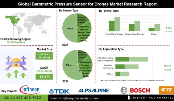 InsightAce Analytic Pvt. Ltd. announces the release of a market assessment report on the "Global Barometric Pressure Sensor for Drones Market Size, Share & Trends Analysis Report By Drone Type (Rotary-Wing Drones, Fixed-Wing Drones, and Hybrid Drones), Sensor Type (Gauge Pressure Sensors, Absolute Pressure Sensors, and Differential Pressure Sensors), Application (Landing Assistance, Weather Monitoring, Defense & Surveillance Operations, Altitude Tracking and Stabilization, Agriculture and Precision Farming), End-user (Commercial, Defense and…