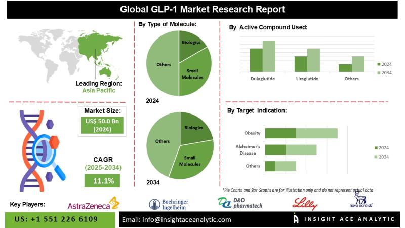 InsightAce Analytic Pvt. Ltd. announces the release of a market assessment report on the "Global GLP-1 Market Size, Share & Trends Analysis Report By Type of Molecule (Biologics and Small Molecules), Active Compound Used (Dulaglutide, Liraglutide, Orforglipron, Retatrutide, Semaglutide, Survodutide, Tirzepatide and Other Active Compounds), Type of GLP-1 Agonist Drugs (Long-acting GLP-1 Agonist and Short-acting GLP-1 Agonist), Type of Agonist (Single-agonist, Dual-agonist and Tri-agonist), Route of Administration (Oral and Parenteral),…