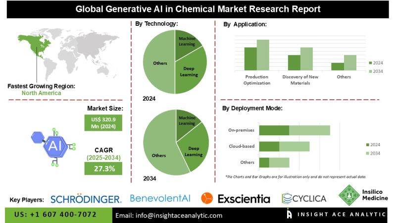 InsightAce Analytic Pvt. Ltd. announces the release of a market assessment report on the " Generative AI in Chemical Market- (By Deployment Mode (On-premises, Cloud-based, Hybrid), By Technology (Deep Learning, Machine Learning, Quantum Computing, Reinforcement Learning, Molecular Docking), By Application (Production Optimization, Feedstock Optimization, Pricing Optimization, Process Management & Control, Product Portfolio Optimization, Discovery of New Materials, Load Forecasting of Raw Materials)), Trends, Industry Competition Analysis, Revenue and Forecast To…