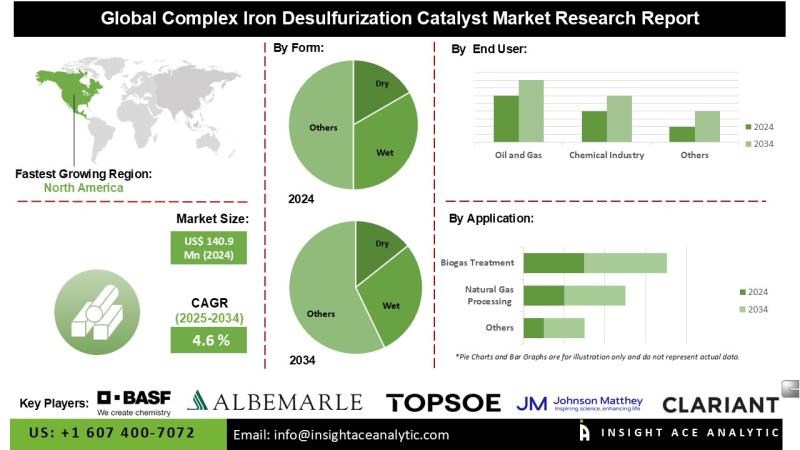 InsightAce Analytic Pvt. Ltd. announces the release of a market assessment report on the " Complex Iron Desulfurization Catalyst Market- (By Form (Dry, Wet), By Application (Refinery Gas Treatment, Natural Gas Processing, Biogas Treatment, Ammonia Synthesis, Others), By End-User (Water Treatment, Oil and Gas, Chemical Industry, Others)), Trends, Industry Competition Analysis, Revenue and Forecast To 2034."