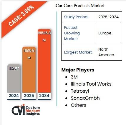 The global car care products market is witnessing steady expansion, driven by rising vehicle ownership, increasing consumer awareness regarding vehicle maintenance, and the growing preference for aesthetic vehicle appearance. Car care products include a wide range of solutions designed to clean, protect, enhance, and preserve both the interior and exterior of automobiles.