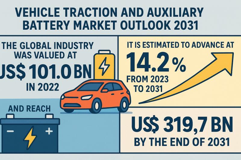 The global Vehicle Traction and Auxiliary Battery Market is undergoing a transformative shift as the world accelerates toward sustainable mobility and advanced automotive electrification. According to the latest industry assessment, the market-valued at US$ 101.0 Bn in 2022-is projected to grow at a CAGR of 14.2% between 2023 and 2031, reaching an impressive US$ 319.7 Bn by 2031. This surge is fueled by the rising adoption of electric vehicles (EVs),…