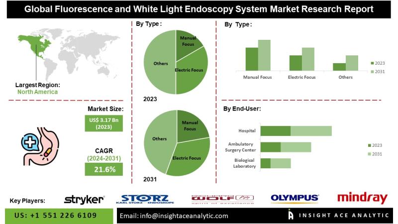 InsightAce Analytic Pvt. Ltd. announces the release of a market assessment report on the "Global Fluorescence and White Light Endoscopy System Market - By Type (Manual Focus and Electric Focus), By Application (Hospital, Ambulatory Surgery Center, and Biological Laboratory), Trends, Industry Competition Analysis, Revenue and Forecast To 2031."