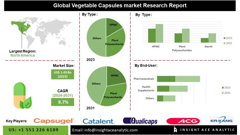 InsightAce Analytic Pvt. Ltd. announces the release of a market assessment report on the "Global Vegetable Capsules Market - (By Type (HPMC,Plant Polysaccharides, Starch), By Application (Pharmaceuticals, Health Supplements, Others)), Trends, Industry Competition Analysis, Revenue and Forecast To 2031."