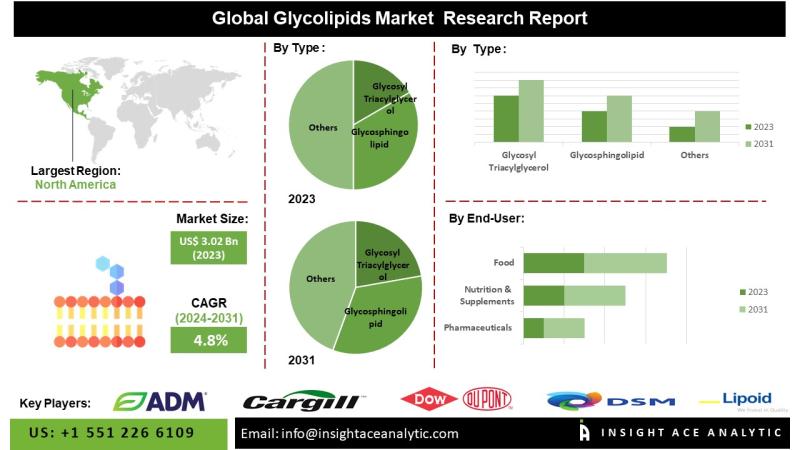 InsightAce Analytic Pvt. Ltd. announces the release of a market assessment report on the "Global Glycolipids Market - (By Type (Glycosyl Triacylglycerol, Glycosphingolipid, and Others), By Application (Food, Nutrition & Supplements, Pharmaceuticals, and Others)), Trends, Industry Competition Analysis, Revenue and Forecast To 2031."