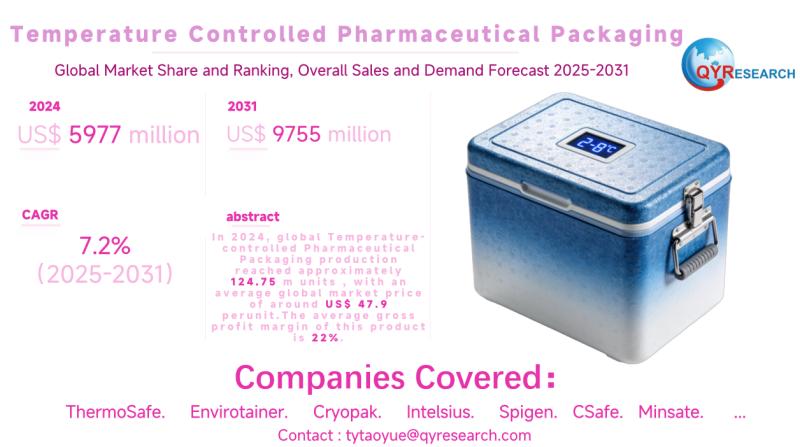 Global leading market research publisher QYResearch published the release of its latest report, "Temperature Controlled Pharmaceutical Packaging - Global Market Share, Ranking, Sales, and Demand Forecast 2025-2031". This in-depth report provides a complete analysis of the global Temperature Controlled Pharmaceutical Packaging market, offering critical insights into market size, share, demand, industry development status, and future forecasts.…