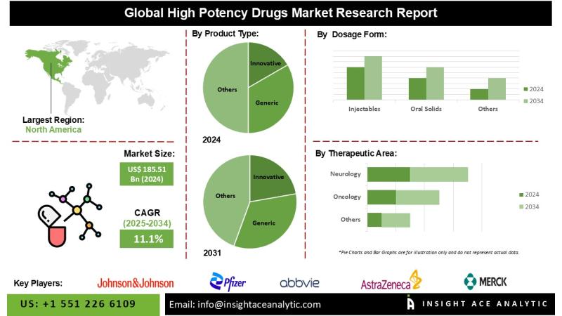 InsightAce Analytic Pvt. Ltd. announces the release of a market assessment report on the "Global High Potency Drug Market Size, Share & Trends Analysis Report By Product Type (Innovative And Generic), Dosage Form (Injectables, Oral Solids, Creams), Manufacturer Type (In-House And Outsourced). Therapeutic Area (Oncology, Hormonal Imbalance, Neurology)- Market Outlook and Industry Analysis 2034"