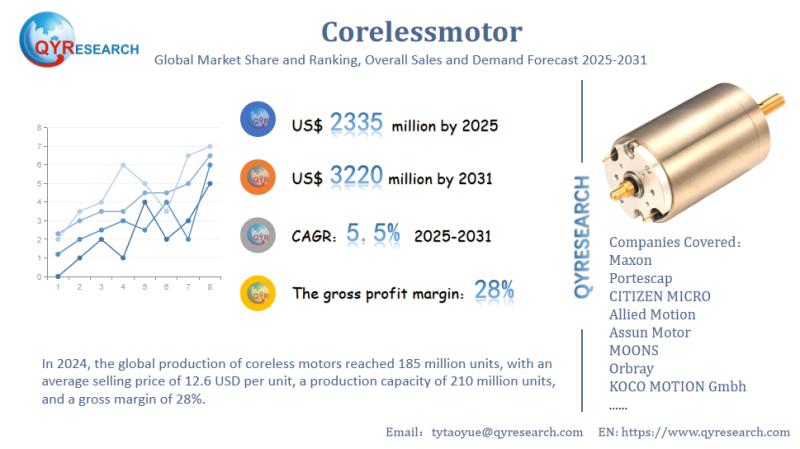 The global market for Corelessmotor was estimated to be worth US$ 2331 million in 2024 and is forecast to a readjusted size of US$ 3220 million by 2031 with a CAGR of 5.5% during the forecast period 2025-2031.