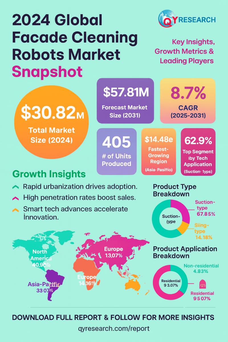 Los Angeles, United States - QY Research has released a new publication titled "Global Facade Cleaning Robots Market Share and Ranking, Overall Sales and Demand Forecast 2025-2031." This comprehensive study provides an in-depth evaluation of the worldwide Facade Cleaning Robots industry, uncovering the major forces influencing market growth and delivering high-value insights for investors, industry leaders, and strategic decision-makers. The report examines critical elements such as market dynamics, evolving technologies,…