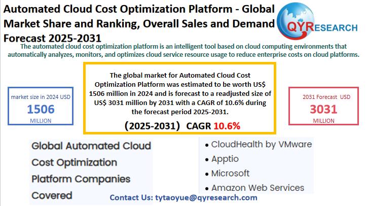 Global Leading Market Research Publisher QYResearch announces the release of its latest report "Automated Cloud Cost Optimization Platform - Global Market Share and Ranking, Overall Sales and Demand Forecast…