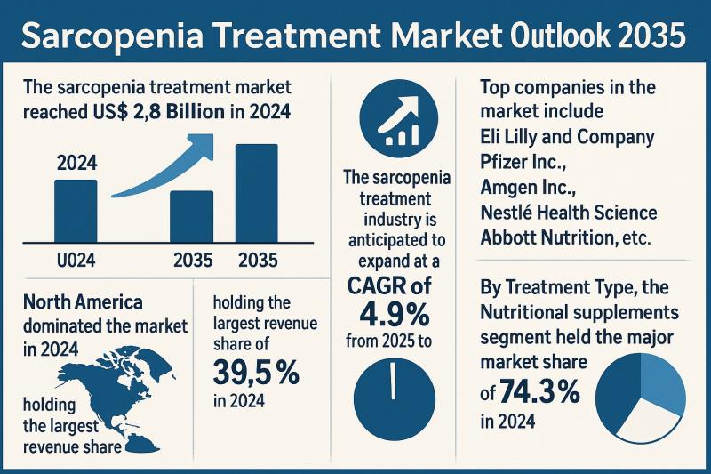The global sarcopenia treatment market is undergoing a period of steady and strategic expansion, driven by demographic transformations, improved diagnostic capabilities, and a surge in interest surrounding preventive health and healthy aging. Valued at US$ 2.8 Billion in 2024, the market is projected to reach US$ 4.7 Billion by 2035, reflecting a CAGR of 4.9% from 2025 to 2035. As the world's population increasingly moves into older age brackets, the…