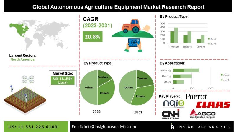 InsightAce Analytic Pvt. Ltd. announces the release of a market assessment report on the "Global Autonomous Agriculture Equipment Market Size, Share & Trends Analysis Report By Type (Autonomous, Semi-Autonomous), Product (Tractors, Unmanned Aerial Vehicles (UAVs), Robots) And Application (Planting, Harvesting, Spraying)- Market Outlook And Industry Analysis 2031"
