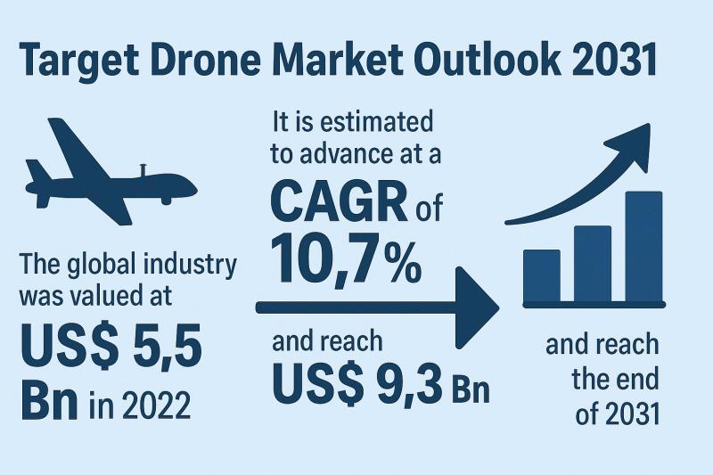 The global target drone market has entered an accelerated phase of expansion as defense modernization, geopolitical tensions, and rapid UAV adoption reshape military preparedness worldwide. Valued at US$ 5.5 Bn in 2022, the industry is expected to grow vigorously at a CAGR of 10.7% from 2023 to 2031, eventually reaching US$ 9.3 Bn by the end of 2031. This surge reflects a convergence of strategic defense needs, technological innovation, and…