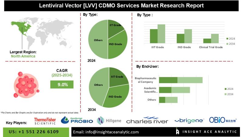 InsightAce Analytic Pvt. Ltd. announces the release of a market assessment report on the "Global Lentiviral Vector (LVV) CDMO Services Market - (By Type (IIT Grade, IND Grade, Clinical Trial Grade, Commercial Production Grade), By Application (Biopharmaceutical Company, Academic Scientific Research Institution)), Trends, Industry Competition Analysis, Revenue and Forecast To 2034."