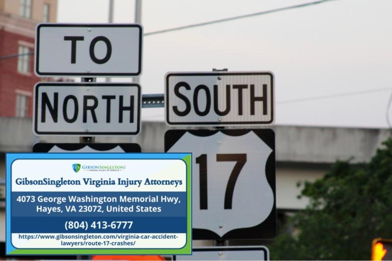 GLOUCESTER, VA - Route 17, the George Washington Memorial Highway, remains one of Gloucester County's most dangerous roadways, with high-speed collisions frequently resulting in serious injuries and fatalities. Gloucester County car accident attorneys Ken Gibson and John Singleton of GibsonSingleton Virginia Injury Attorneys (https://www.gibsonsingleton.com/virginia-car-accident-lawyers/route-17-crashes/) are providing guidance on the legal rights available to crash victims and the challenges they face when pursuing compensation under Virginia's strict fault laws.