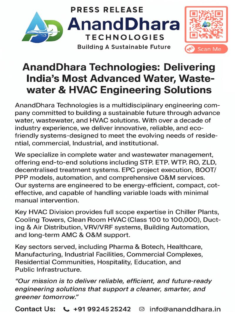 AnandDhara Technologies Unveils India's Most Advanced Water, Wastewater & HVAC Engineering Solutions
