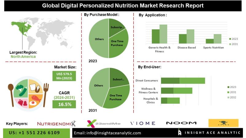InsightAce Analytic Pvt. Ltd. announces the release of a market assessment report on the "Global Digital Personalized Nutrition Market - (By Purchase Model (Subscription, One Time Purchase), By End-users (Direct Consumers, Wellness & Fitness Centers, Hospitals & Clinics, Institutions), By Application (Generic Health & Fitness, Disease Based, Sports Nutrition)), Trends, Industry Competition Analysis, Revenue and Forecast To 2034."
