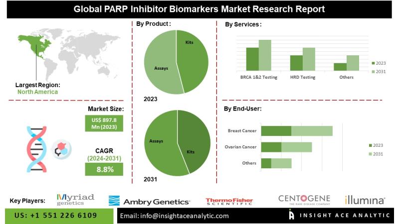 InsightAce Analytic Pvt. Ltd. announces the release of a market assessment report on the "Global PARP Inhibitor Biomarkers Market - (By Product (Kits, Assays), By Services (BRCA 1 & 2 Testing, HRD Testing, HRR Testing, Others), By Application (Breast Cancer, Ovarian Cancer, Others)), Trends, Industry Competition Analysis, Revenue and Forecast To 2031."