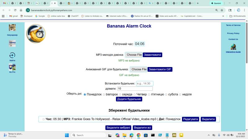 Built with the Mozilla Web Speech API and a custom regex engine, Bananas Alarm Clock understands natural voice commands in Spanish, Ukrainian, French, Italian, Portuguese, Dutch, and more languages coming soon. Simply speak your alarm request, and the app will: