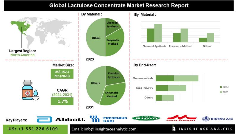 InsightAce Analytic Pvt. Ltd. announces the release of a market assessment report on the "Global Lactulose Concentrate Solution Market- (By Type (Chemical Synthesis, and Enzymatic Method) By Application (Pharmaceuticals, Food Industry, and Others), By Region, Trends, Industry Competition Analysis, Revenue and Forecast To 2031."