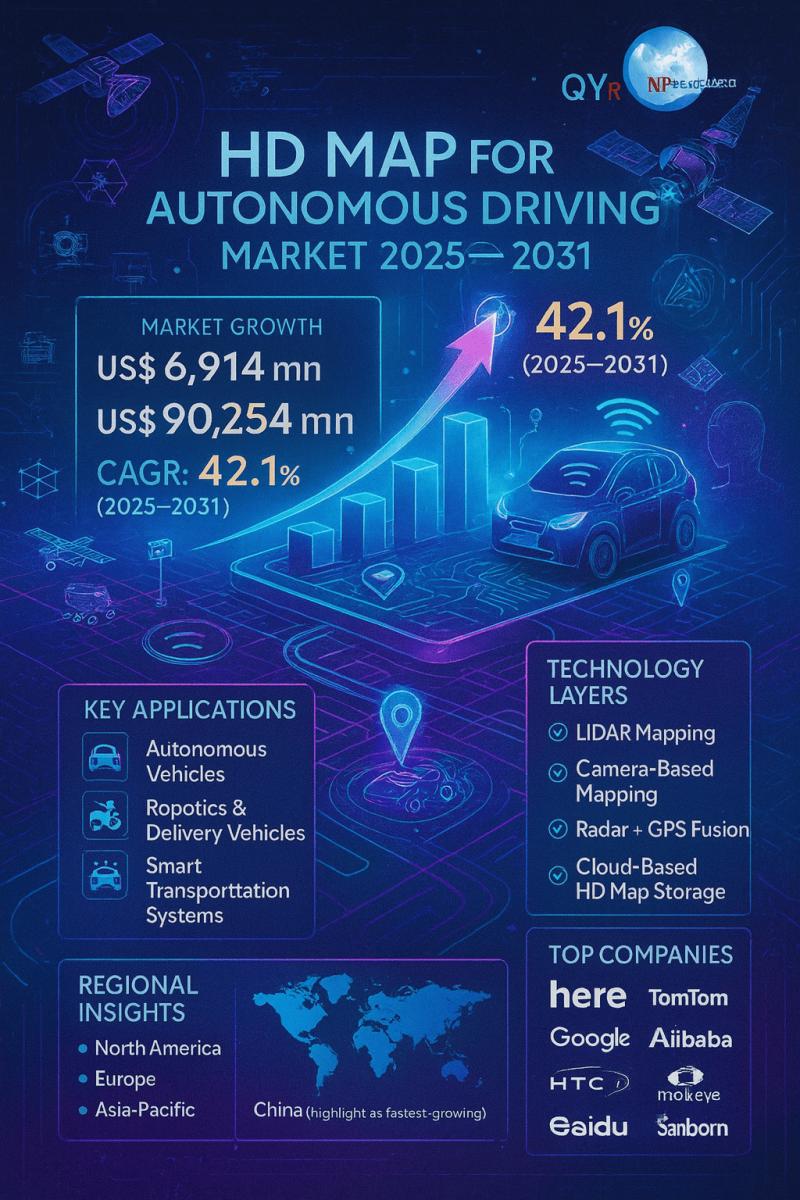 Los Angeles, United States - QY Research has released a new publication titled "Global HD Map for Autonomous Driving Market Share and Ranking, Overall Sales and Demand Forecast 2025-2031." This comprehensive study provides an in-depth evaluation of the worldwide HD Map for Autonomous Driving industry, uncovering the major forces influencing market growth and delivering high-value insights for investors, industry leaders, and strategic decision-makers. The report examines critical elements such as market dynamics, evolving technologies, segmentation trends, regional developments, and the competitive landscape. With data backed by rigorous research and expert interpretation, it offers an authoritative guide to understanding the macroeconomic and microeconomic factors reshaping the global market.The global market for HD Map for Autonomous Driving was estimated to be worth US$ 6914 million in 2024 and is forecast to a readjusted size of US$ 90254 million by 2031 with a CAGR of 42.1% during the forecast period 2025-2031.