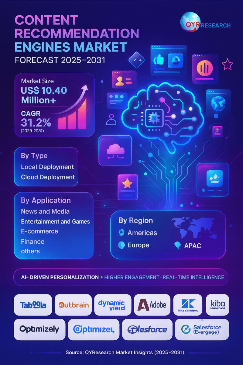 Accourding to QY Research has released a new publication titled "Global Content Recommendation Engines Market Share and Ranking, Overall Sales and Demand Forecast 2025-2031." This comprehensive study provides an…