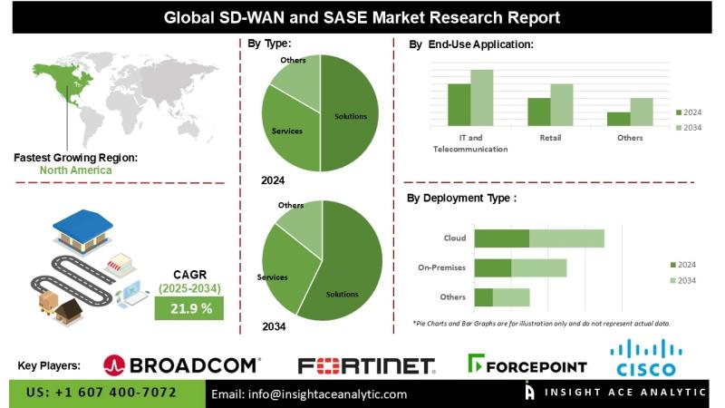 InsightAce Analytic Pvt. Ltd. announces the release of a market assessment report on the "Global SD-WAN and SASE Market Size, Share & Trends Analysis Report, By Application (IT & Telecommunication, Retail, Financial Services, and Insurance (BFSI), Manufacturing, and Others), By Type (Solutions, and Services), By Deployment Mode (On-Premises, and Cloud), By Enterprise Size (Small & Medium Enterprises, and Large Enterprises)-Market Outlook And Industry Analysis 2034"