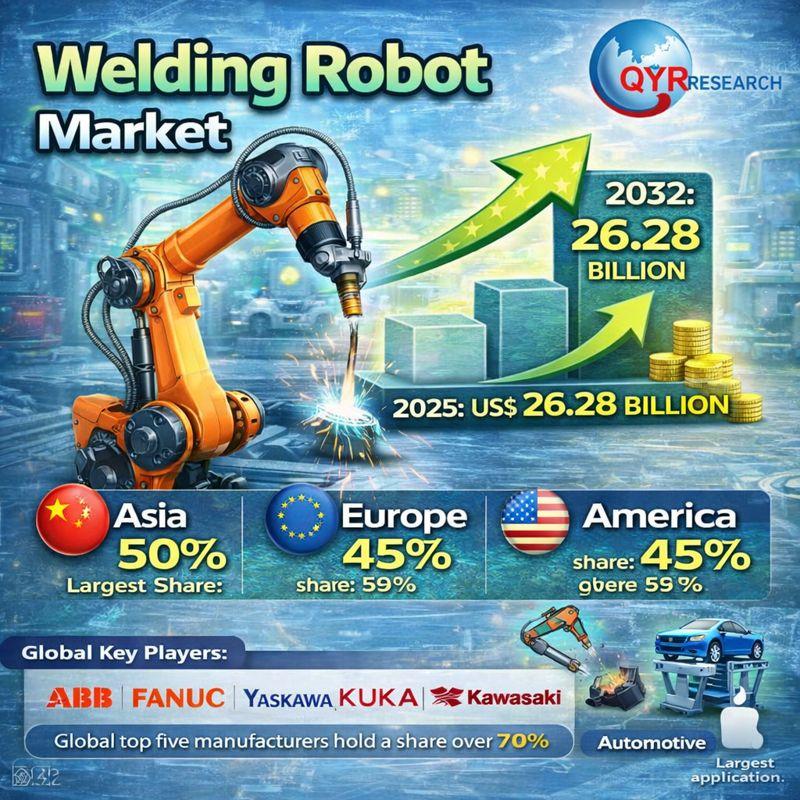 QY Research Inc., A global market research and consulting firm, has announced the release of its latest 2025 report titled "Welding Robot - Global Market Share and Ranking, Overall Sales and Demand Forecast 2026-2032." The report provides a data-driven analysis of the global Welding Robot market, integrating historical insights from 2020-2024 with forward-looking forecasts through 2032. It covers market size, competitive landscape, demand trends, and industry development, offering strategic…