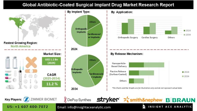 InsightAce Analytic Pvt. Ltd. announces the release of a market assessment report on the "Global Antibiotic-Coated Surgical Implant Drug Market Size, Share & Trends Analysis Report By Coating Antibiotic Agent (Gentamicin, Tobramycin, Minocycline, Combination Antibiotics, Daptomycin, Vancomycin, Rifampin, and Others), Implant Type (Orthopedic Implants (Trauma Fixation Devices (plates, screws, rods), Knee Prostheses, Hip Prostheses, Spinal Implants, Others), Dental Implants (Titanium Dental Implants, Zirconia Dental Implants, Others), Cardiovascular Implants (Stents, Vascular…