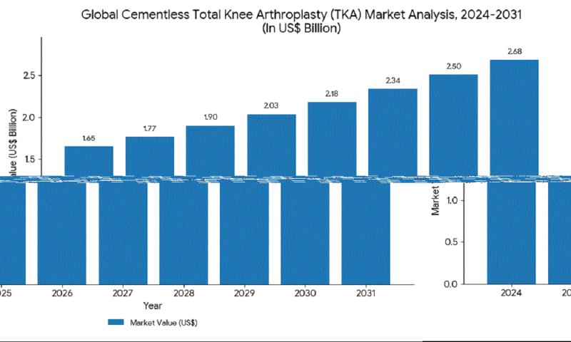 The Cementless Total Knee Arthroplasty (TKA) Market was valued at USD 1.65 billion in 2024 and is projected to reach USD 2.85 billion by 2031, growing at a CAGR of 7.2% during the forecast period. The growth is primarily driven by the increasing prevalence of osteoarthritis, aging populations, and the global trend toward biological fixation techniques that improve implant longevity. Cementless implants provide better bone integration and reduce post-operative…